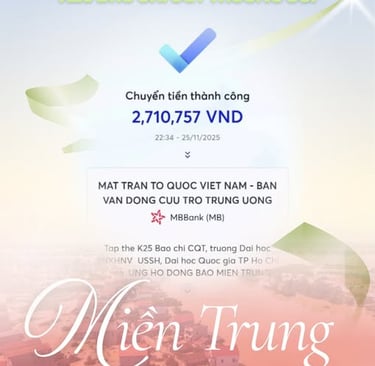 Đoàn - Hội khoa Báo chí và Truyền thông xin tuyên dương Chi đoàn K25 Báo chí CQT. Với tinh thần tương thân tương ái, Chi đoàn K25 Báo Chí CQT đã gửi gắm chút tấm lòng sẻ chia đến với miền Trung thân thương.